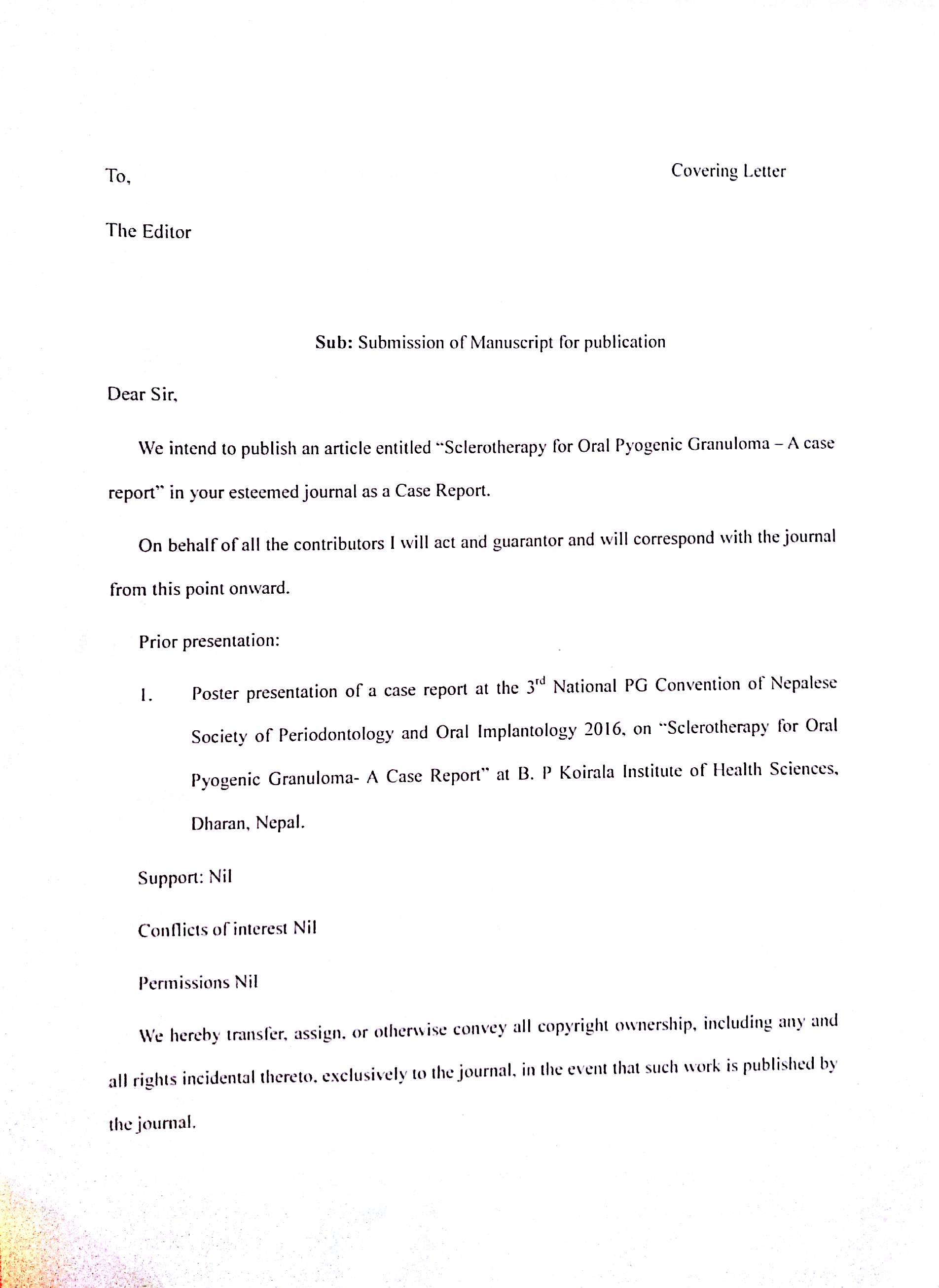 Since a case report is usually about a single or a group of patients, this section plays a very important role cover letter for case report. Most journals require that a cover letter be submitted along with each manuscript submitted for publication.